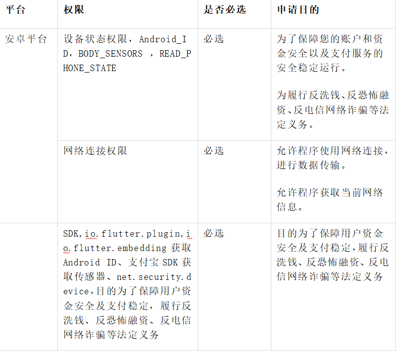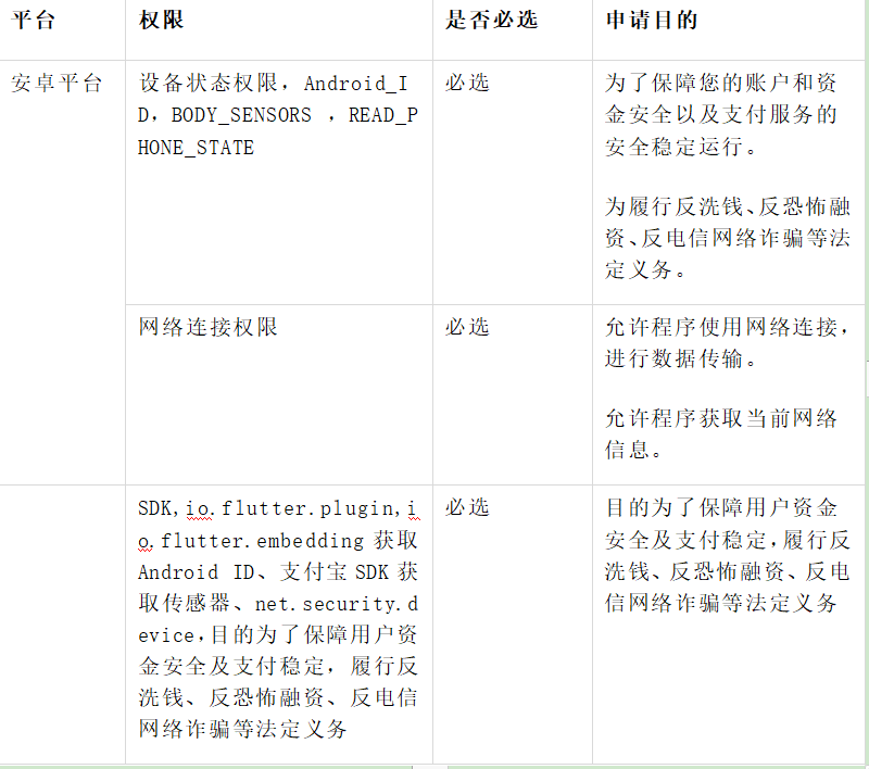 (2)设备标识信息:Android ID、OAID、Google AID(Google广告ID)net.security.device,Android_ID,BODY_SENSORS ,READ_PHONE_STATE;